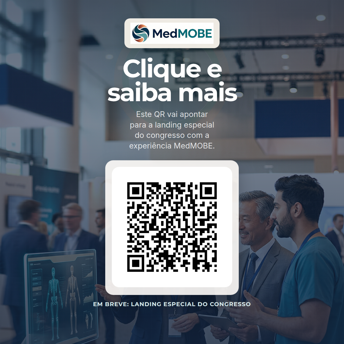 Todos os materiais abaixo foram refeitos com a paleta oficial do MedMOBE, composição editorial nova e fundos gerados com Nano Banana 2 para dar mais presença, desejo e realismo às peças do congresso.